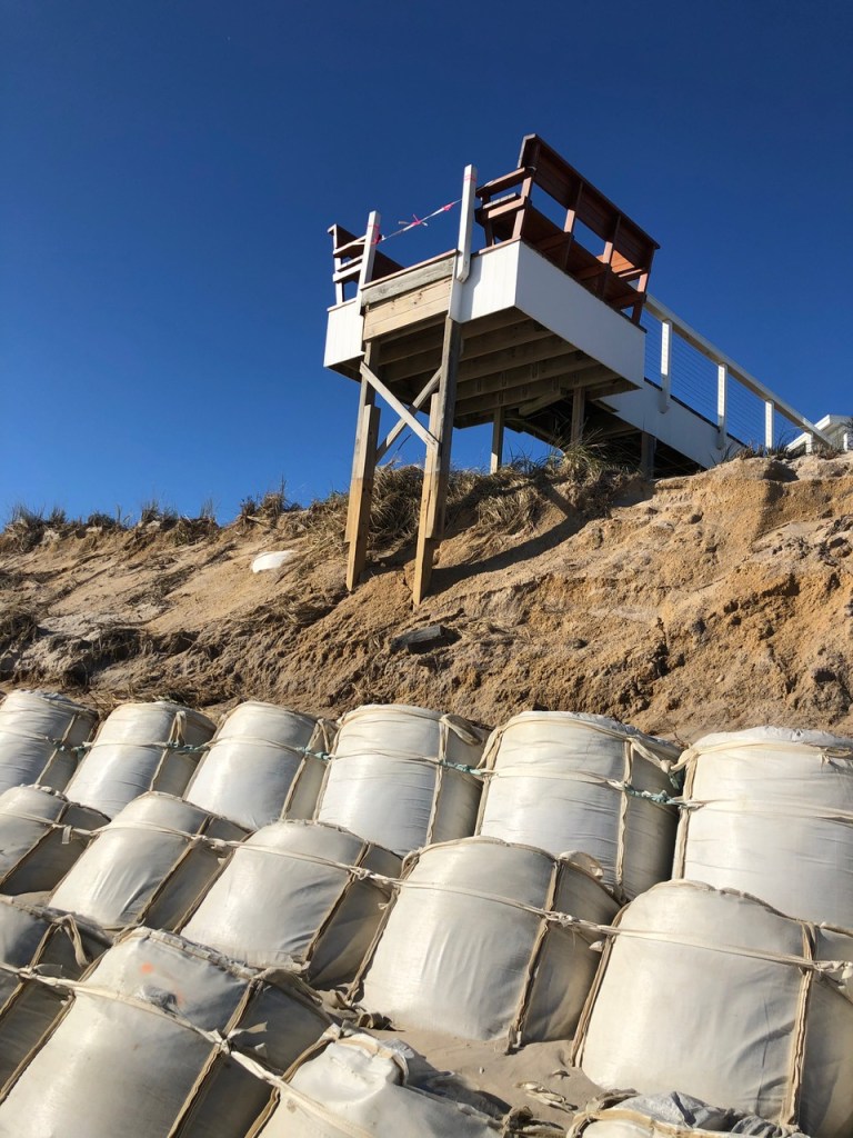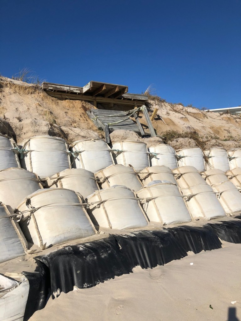 Hard and soft structures can accelerate beach erosion by limiting natural sand movement and producing scouring, as evidenced by recent pictures of engineering activities on Quogue’s beachfront. These actions may lead to faster, self-inflicted deterioration.